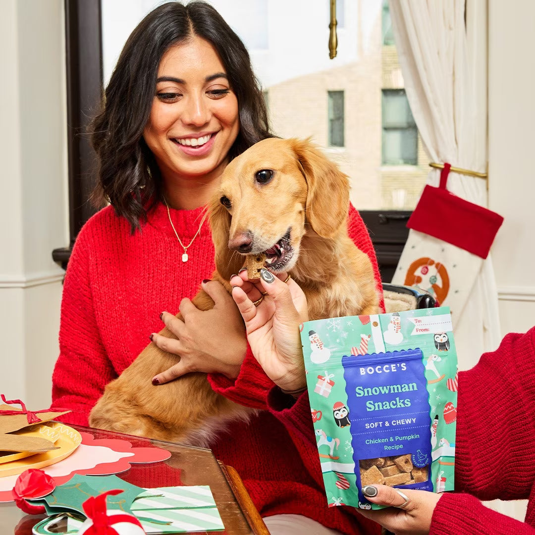 Treat your furry friend to the ultimate snowy day delight with Bocce’s Bakery Snowman Snacks Chicken & Pumpkin Limited Ingredient Soft & Chewy Dog Treats. Made with real chicken, pumpkin, and oats, these limited-ingredient treats are packed with all-natural goodness and irresistible taste. Baked in small batches in the USA, with only the best ingredients. Plus, you can feel good knowing that Bocce’s Bakery recipes are wheat, corn, and soy-free. Give your pup the gift of simple and fun holiday treating with Snowman Snacks!