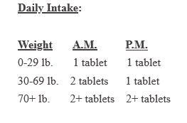 A dietary supplement for dogs and cats. Each liver flavored tablet contains: