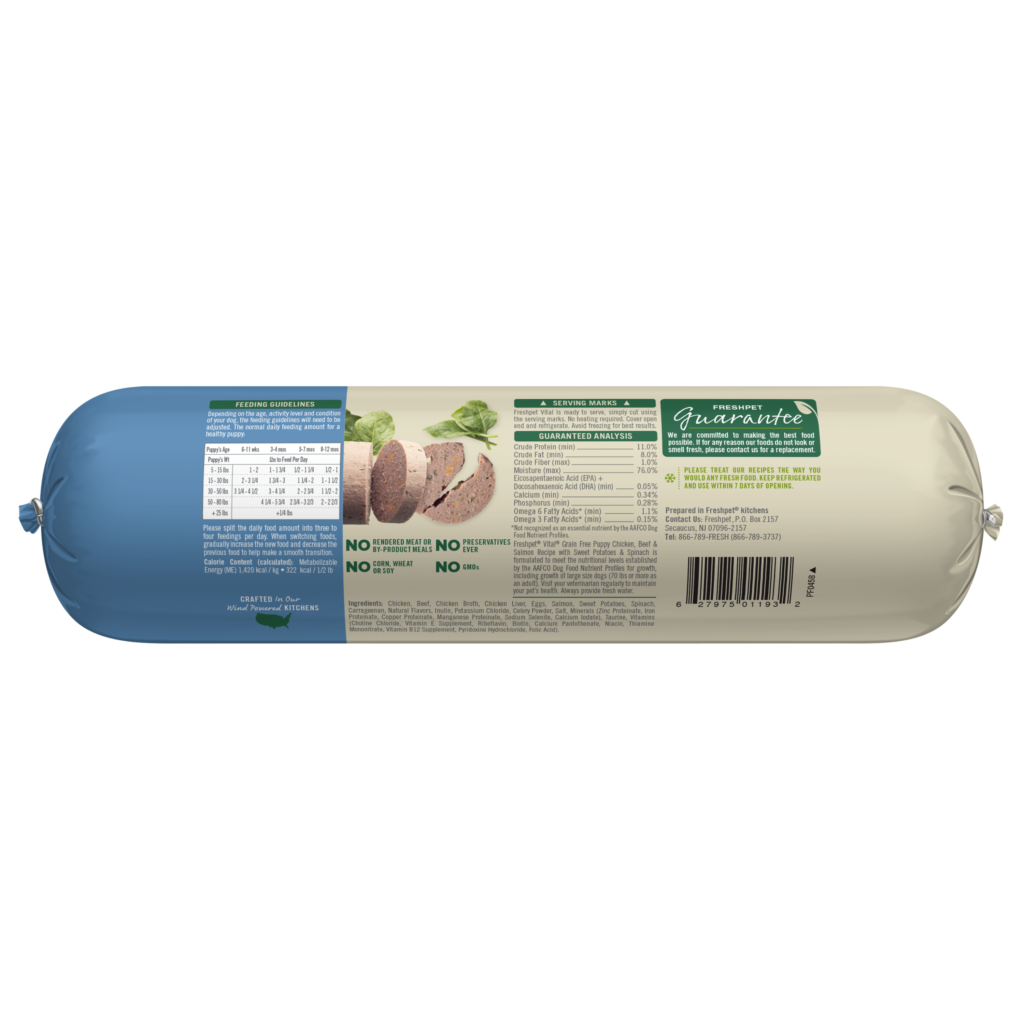 Freshpet Vital Grain Free Chicken, Beef & Salmon Puppy Recipe, Gently Cooked Dog Food, 2-lb Roll