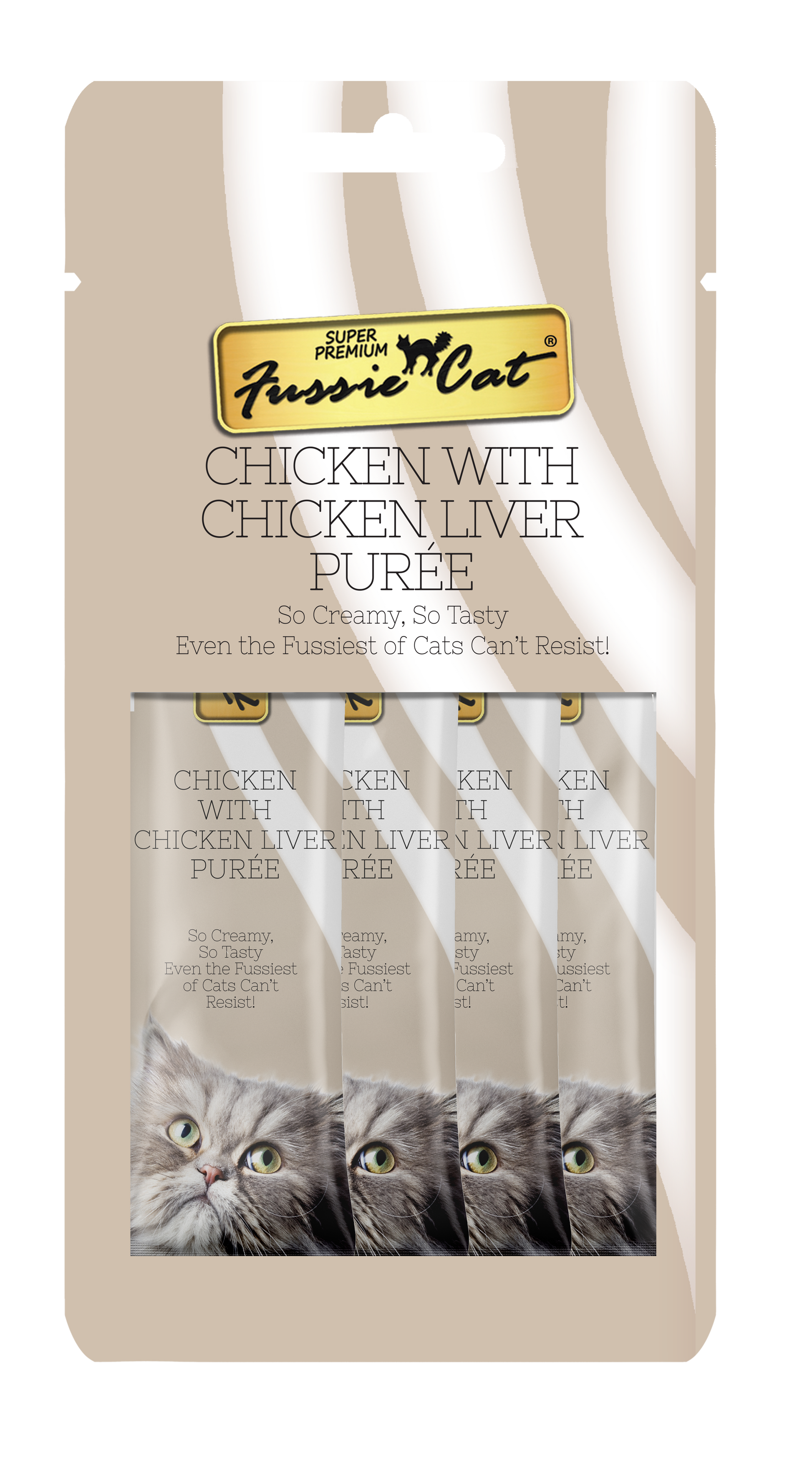 Fussie Cat Chicken With Chicken Liver Purée 0.5-oz, 4-Pack, Cat Treat