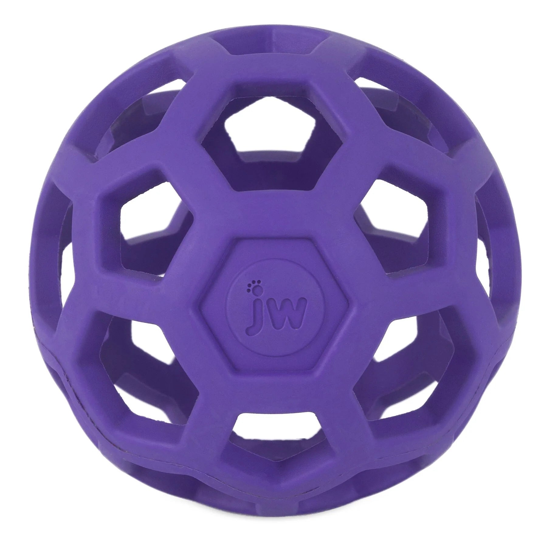The JW® Hol-ee Roller® is a fun, versatile puzzle dog toy that lets dogs play in multiple ways! Made from durable soft, stretchy natural rubber, the Hol-ee Roller features a unique open design that makes it easy to stuff a dog's favorite treats, kibble, other small toys, ice cubes, or whatever else you can think of to create mentally challenging puzzle experience for dogs. As a dog works to remove treats of different shapes and sizes from the Hol-ee Roller they develop problem-solving skills and increase their mental abilities. Natural rubber is gentle on a dog's gums as they chew and teethe. Available in a variety of sizes, the Hol-ee Roller can be used as a training aid or for fetch, toss, tugging, chew toy and puzzle treat time. A versatile toy for dogs of different ages and breeds. Ships in assorted colors.
