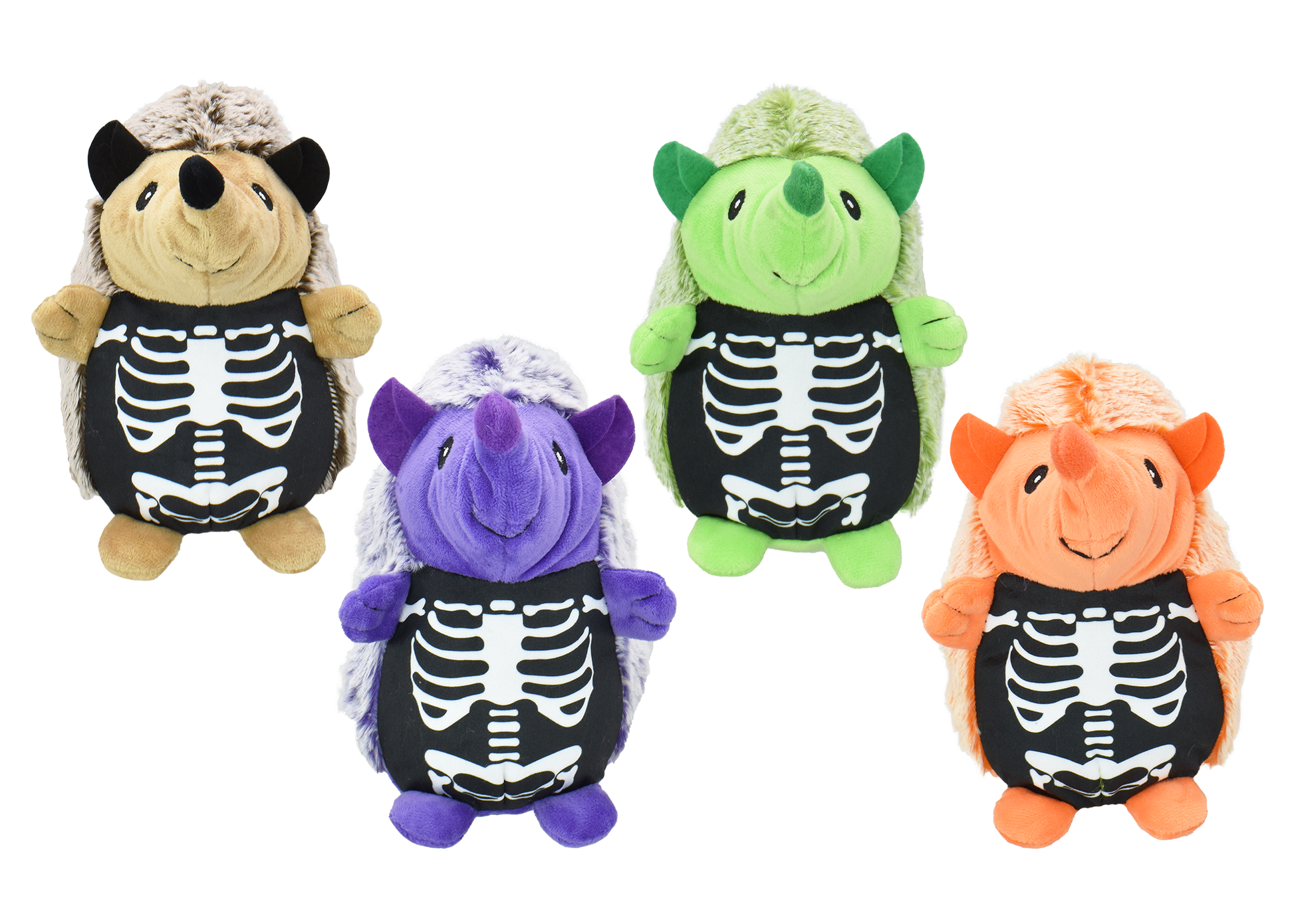 Creep it real with our Skeleton Hedgehogs! Straight from the crypt of our best-sellers, these fun plush pals are dressed to thrill in festive skeleton costumes and come in an assortment of Halloween colors. Their boo-tifully soft exterior makes them the ultimate friend for cuddles, and they let out a spooky grunt (squeak for mini’s) when squeezed! (8in Tall)