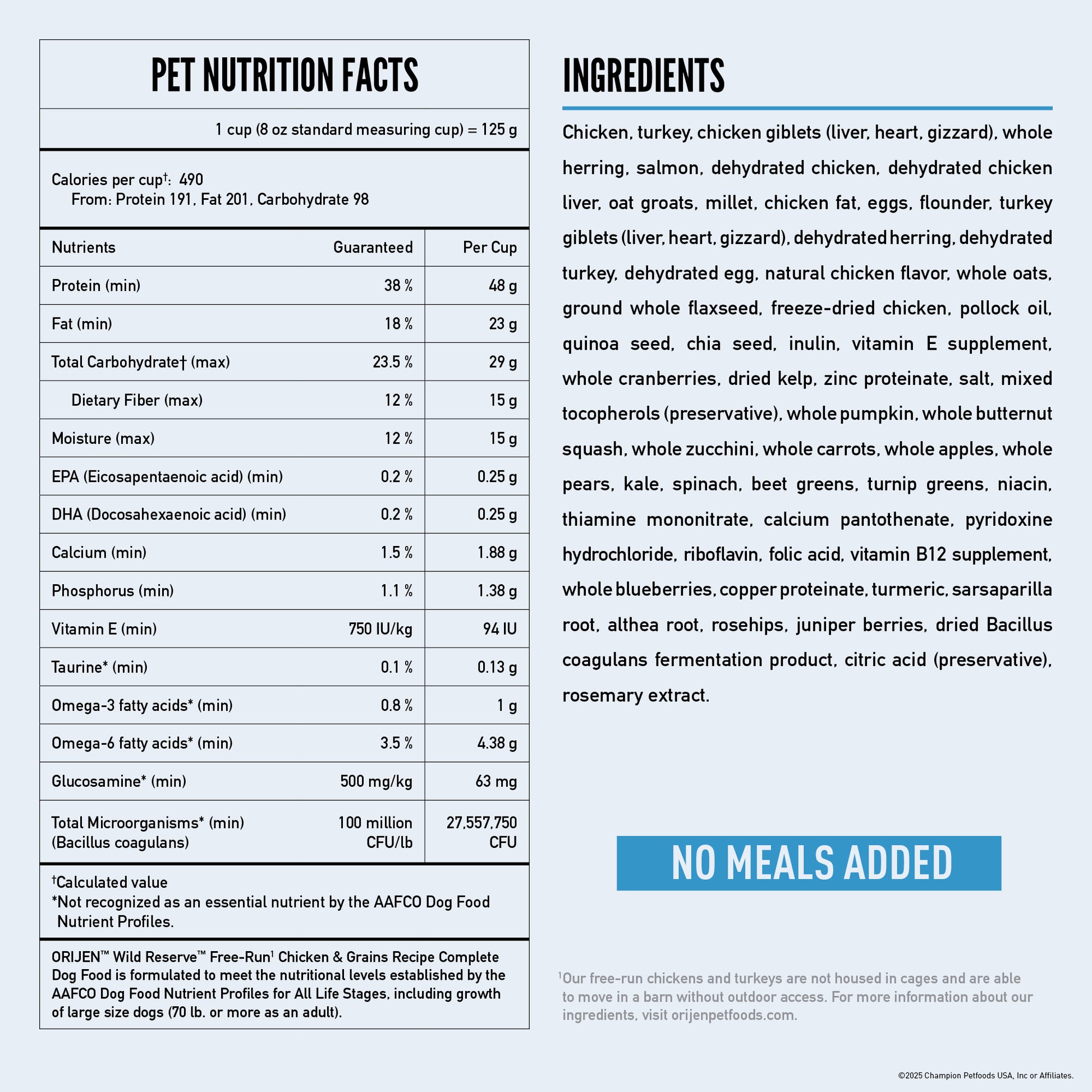 Orijen Wild Reserve Free-Run Chicken & Grains Recipe, Dry Dog Food