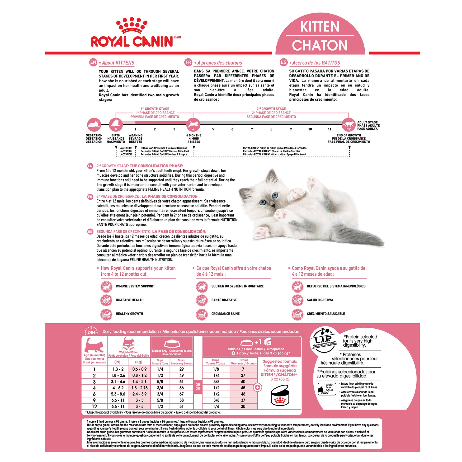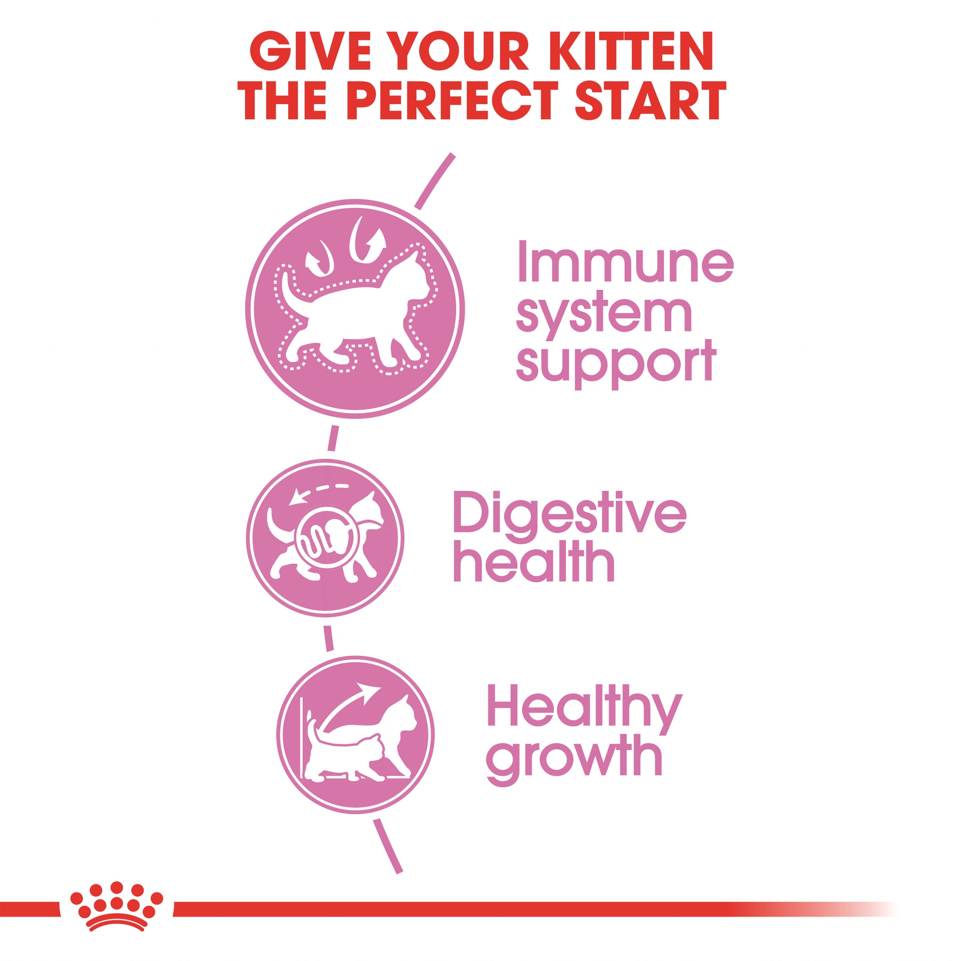 By the time a kitten gets to be around 4 months old, their growth rate slows, but their activity levels skyrocket. With intensifying energy levels, developing bones, growing muscles, and emerging teeth, older kittens need a different kind of nutrition than a younger baby cat. Royal Canin Kitten Dry Food gives a kitten a healthy start with nutritional precision: An innovative mix of highly digestible proteins, vitamins, and other essential minerals support their maturing digestive system and keeps their growing bodies strong. And an exclusive blend of antioxidants supports their developing immune system. Transitioning from Royal Canin Mother & Babycat wet and dry formulas is easy: the small, easy-to-chew kibble made specifically for kittens’ mouths.