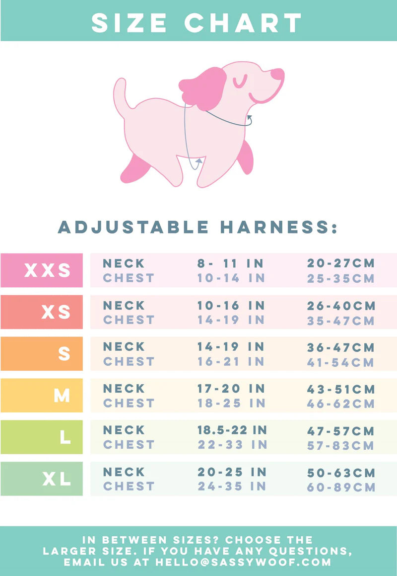 Perfect for every season, this stunning collection will look great on any pup. This vibrant, but subtle blue will have your pup feeling playful and posh. Pair this harness with our ‘Blumond’ bundle or mix and match with our other collections.