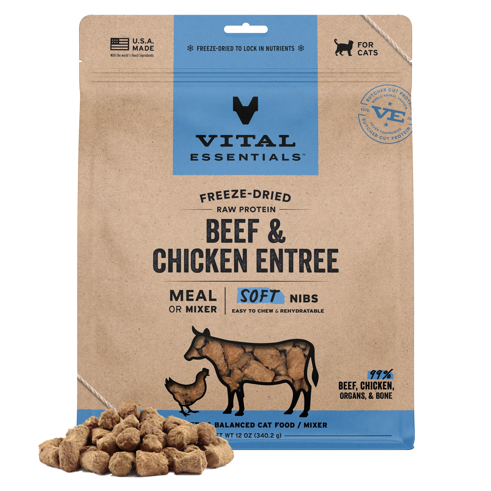 Vital Essentials Beef & Chicken Soft Nibs Meal or Mixer Freeze-Dried Cat Food, 12-oz Bag
