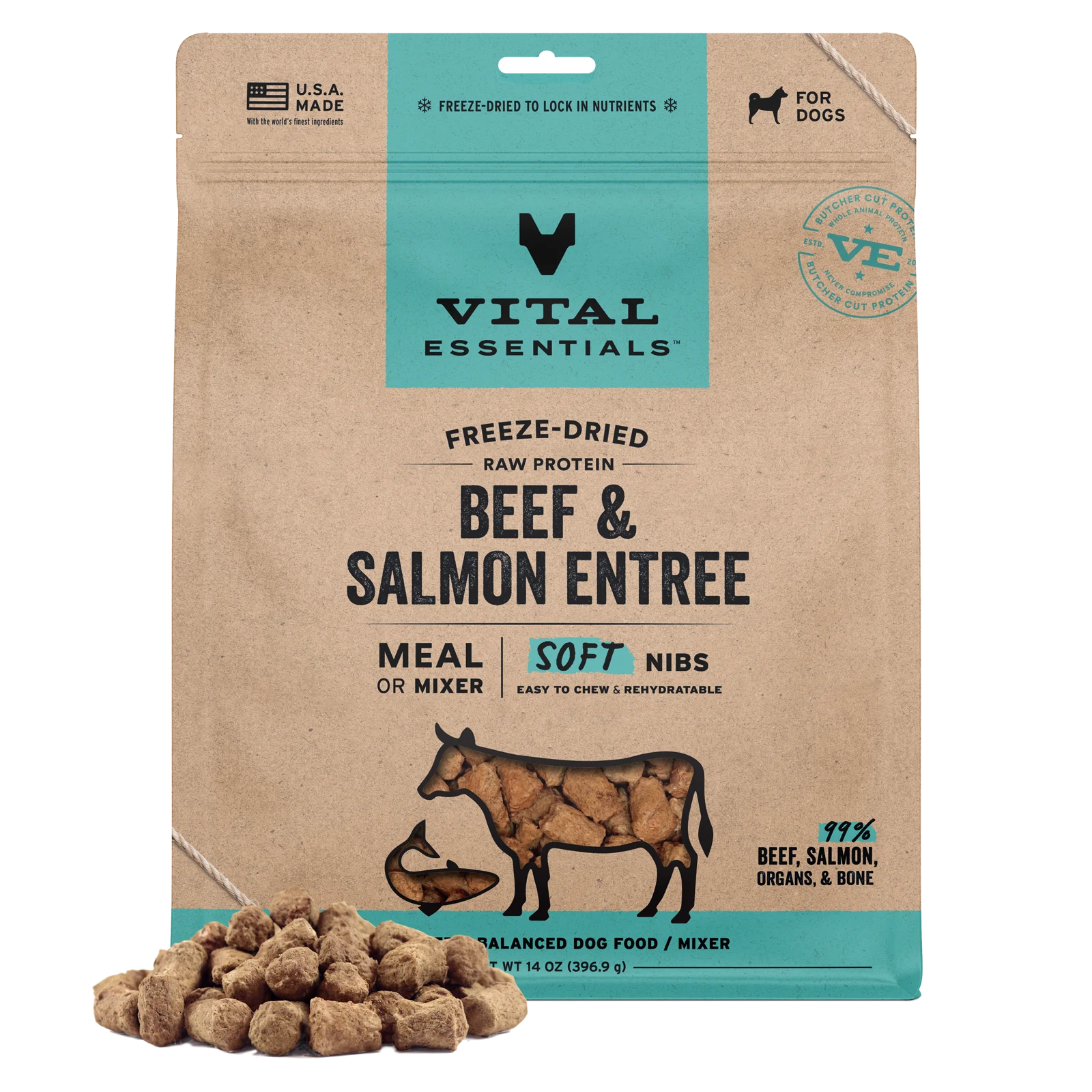 Vital Essentials Beef & Salmon Soft Nibs Meal or Mixer Freeze-Dried Raw Dog Food, 14-oz Bag