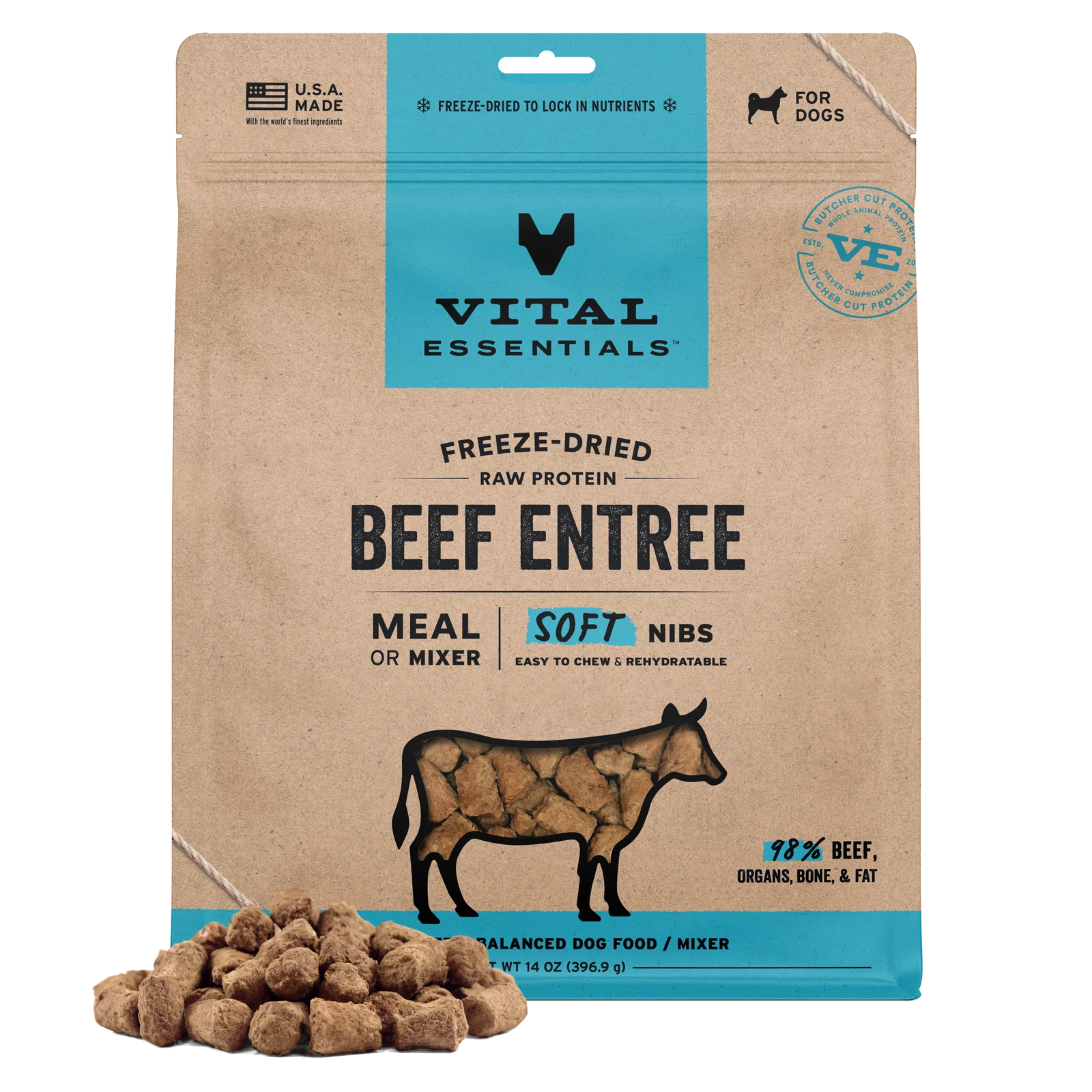 Vital Essentials Beef Soft Nibs Meal or Mixer Freeze-Dried Raw Dog Food, 14-oz Bag