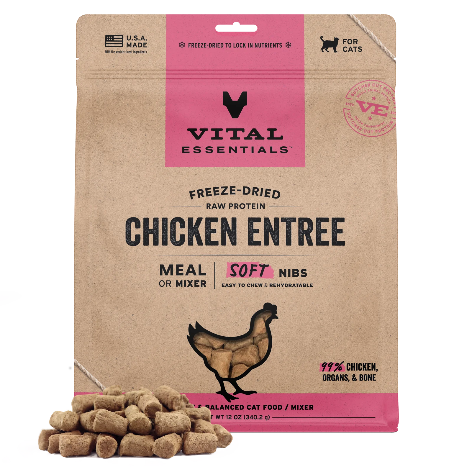 Vital Essentials Chicken Soft Nibs Meal or Mixer Freeze-Dried Cat Food, 12-oz Bag